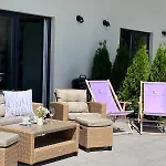 Die Willa Lawenda I Rumianek bietet eine Essecke mit Ausstattung zur Kaffee- & Teezubereitung. Es gibt auch eine Mikrowelle, eine Kaffee-/Teemaschine und Küchenutensilien, damit Sie sich Ihr eigenes Essen zubereiten können.